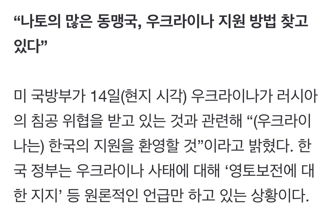 国防総省「ウクライナ、韓国の支援を歓迎する」