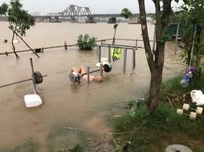 体育館に水が溜まっている