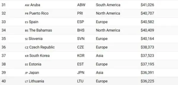 今年の一人当たりGDPが4万ドルを超える先進国