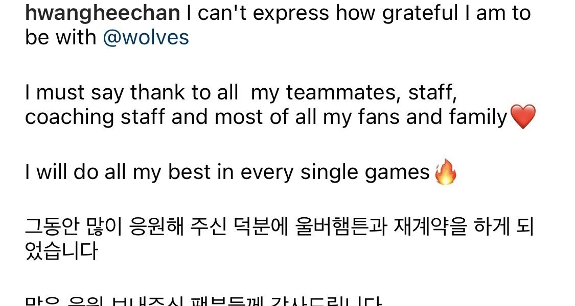 ファン·ヒチャンインスタウルバーハンプトンと再契約