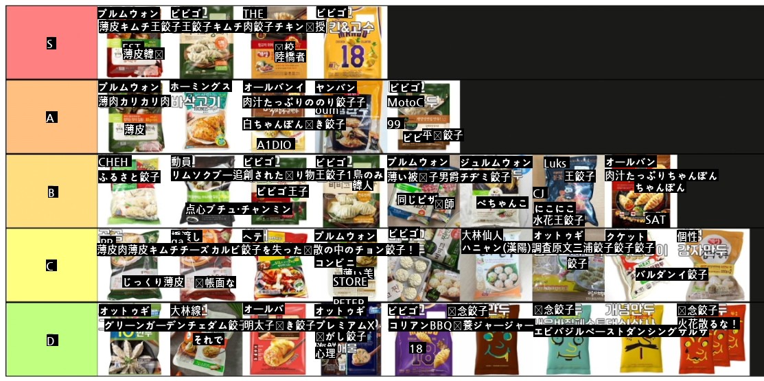YouTuberスンウパパの冷凍餃子ティア表jpg