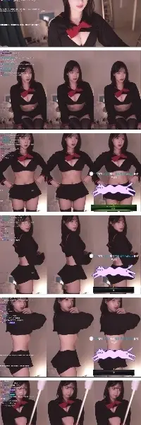 ミョンアチュ、黒いブラジャーの上からセーラー服をまくり上げて胸の谷間を露出