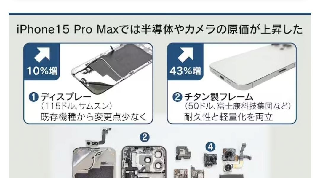 iPhone15プロマックス部品の原価は75万5千ウォン