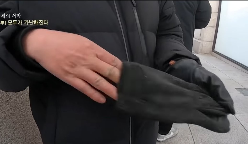 厳しい寒さの並びバイトをしているキムサンスさん。