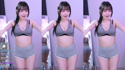 (SOUND)Friendship x4 胸の谷間が開いたグレーのブラトップ + グレーのドルフィンのお尻にフィット
