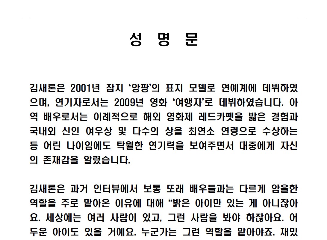昨日のキム・ホジュンギャラリー声明