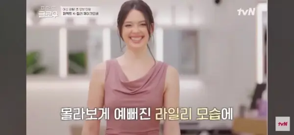 夫はアメリカ人の妻が韓国風の化粧をしているのを見る
