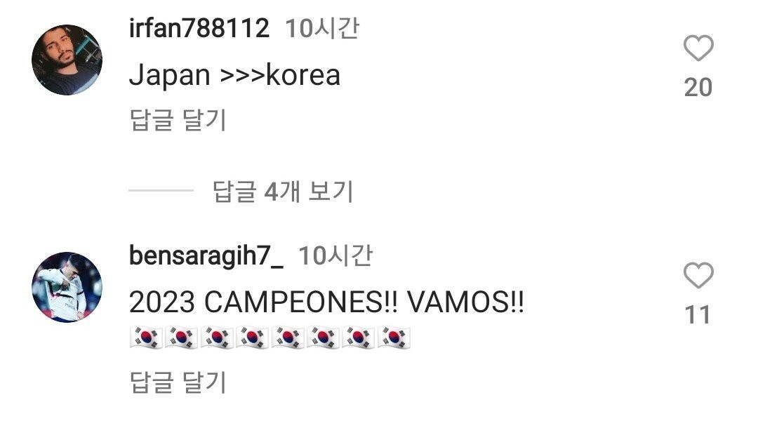 嫌韓コメントでうんざりしたAFCインスタ