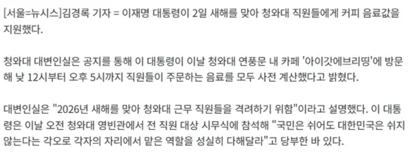 李大統領、青瓦台職員らにコーヒーを淹れ…新年に向け職員らを激励