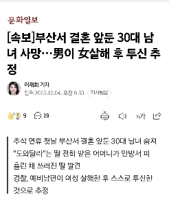 [ニュース速報]釜山で結婚している30代の男性と女性…男性殺人後のコミットメントの推定