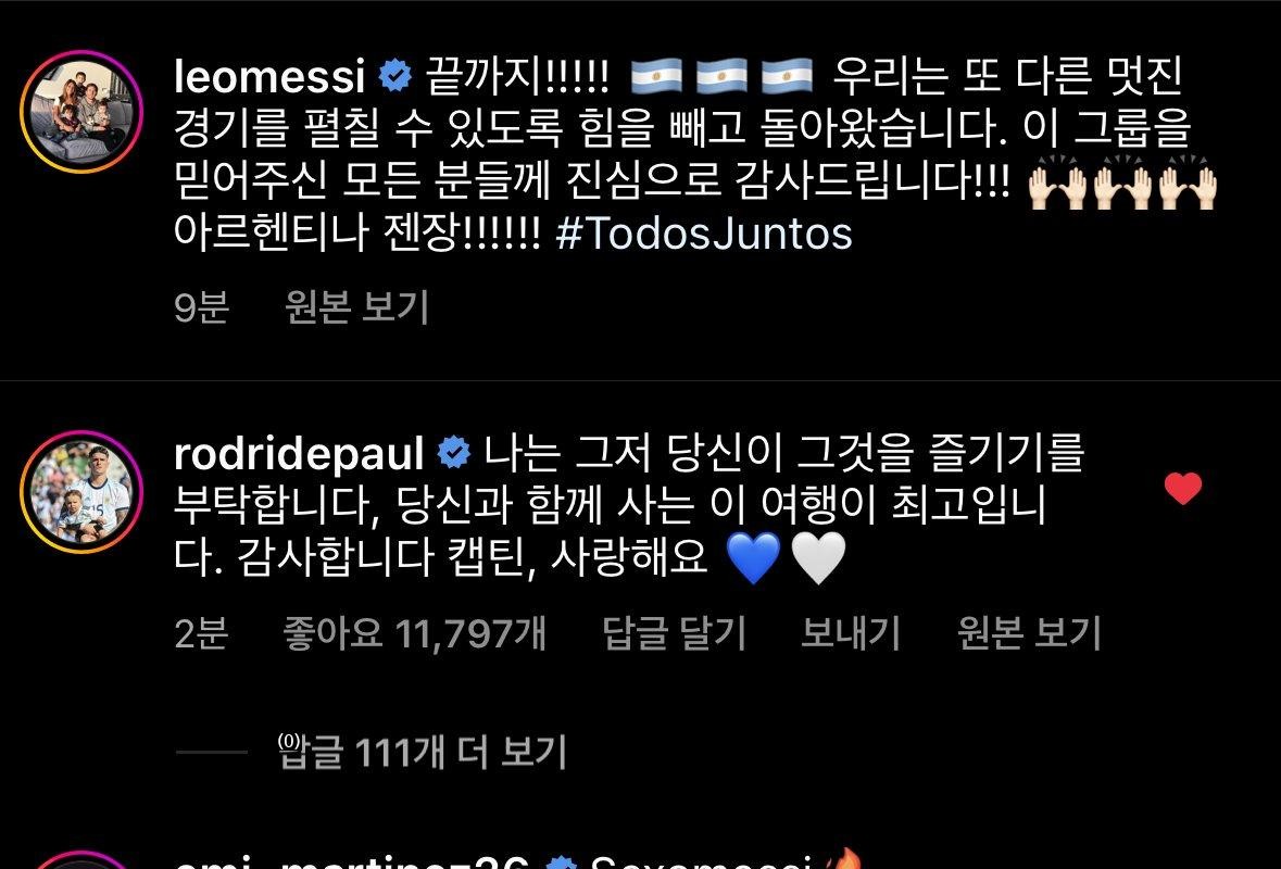 さっきアップされたメッシのインスタに エミシンのコメント…
