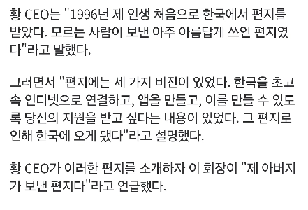 29年前、サムスンのイ・ゴンヒ氏がジェンセン・ファン氏に送った手紙。