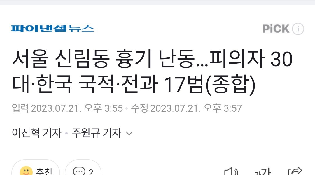ソウル新林洞(シンリムドン)の凶器騒動···被疑者30代·韓国国籍·前科17犯