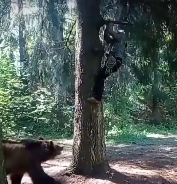 (SOUND)熊を避けて木の上に登る男gif