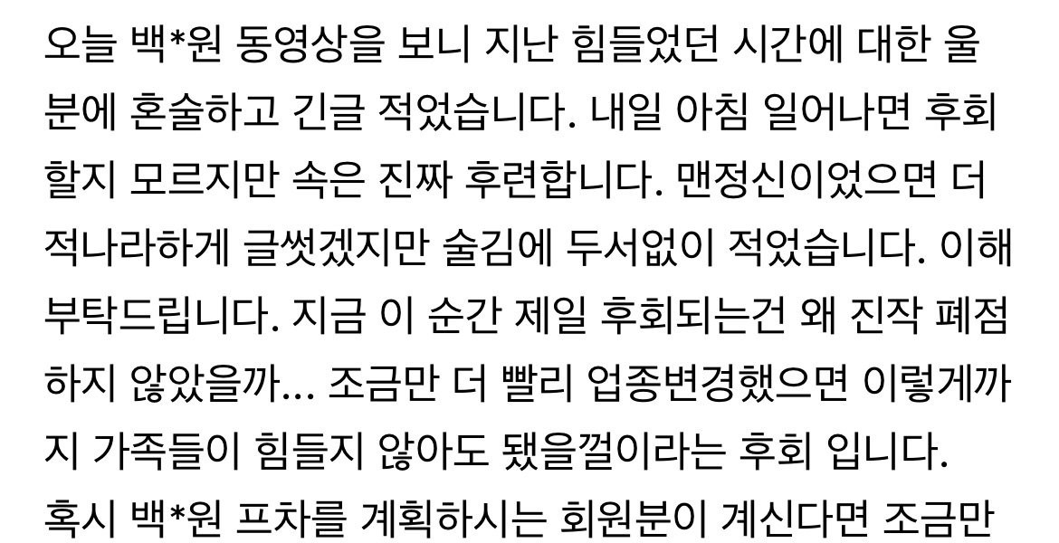 ペク·ジョンウォンがプチャをして閉店した店主が怒って書いた文