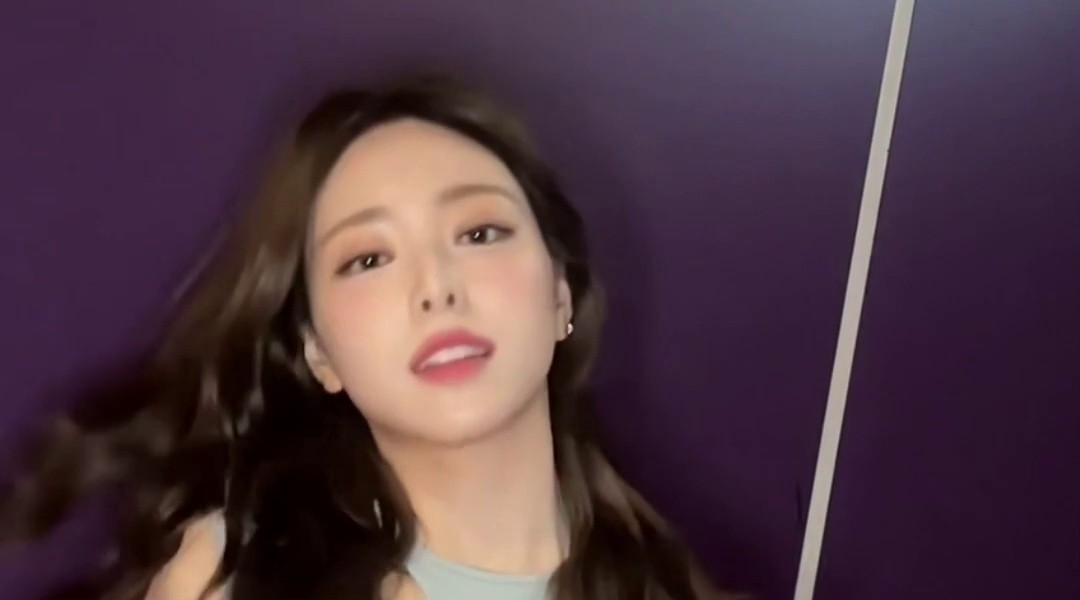 TWICEナヨンの横から見たスカイブルーのコルセットプルアップブラブラ