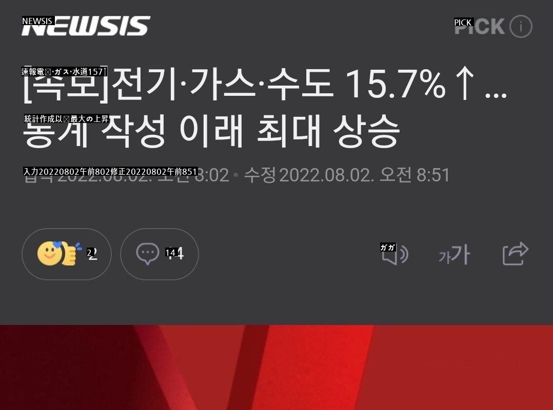 [속보]전기·가스·수도 15.7%↑…통계 작성 이래 최대 상승
