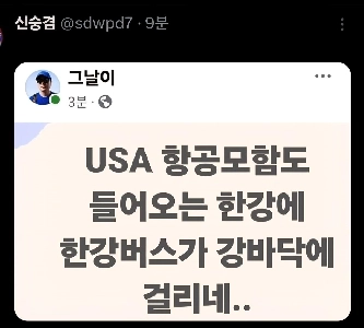 “”””米空母も来航中の漢江の河川敷で漢江バスが立ち往生。