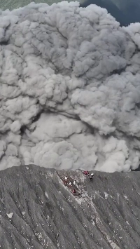 (SOUND)火山噴火の瞬間に逃げる人々