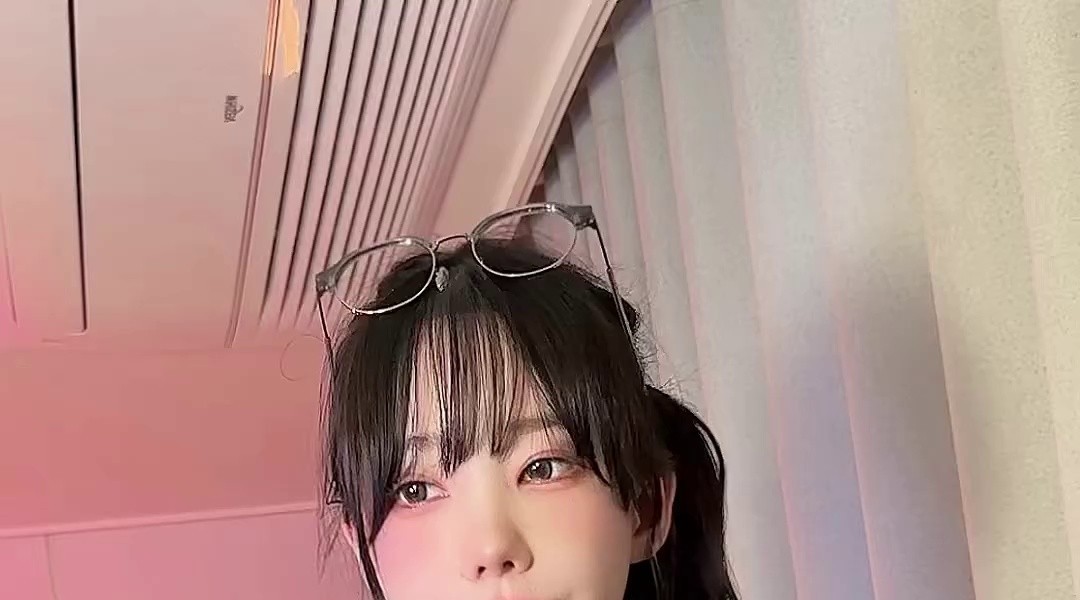 (SOUND)メガネの頭に乗せたマゼンタの胸が強調されたグレーの衣装 ボタンオープン