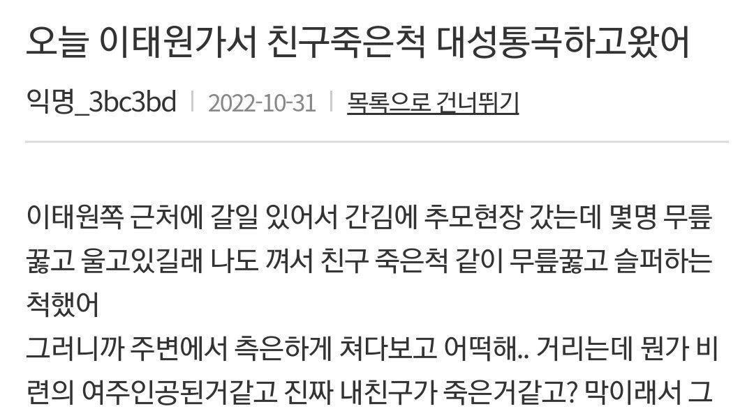梨泰院に行って友達が死んだふりをして号泣してきたという狂った奴。