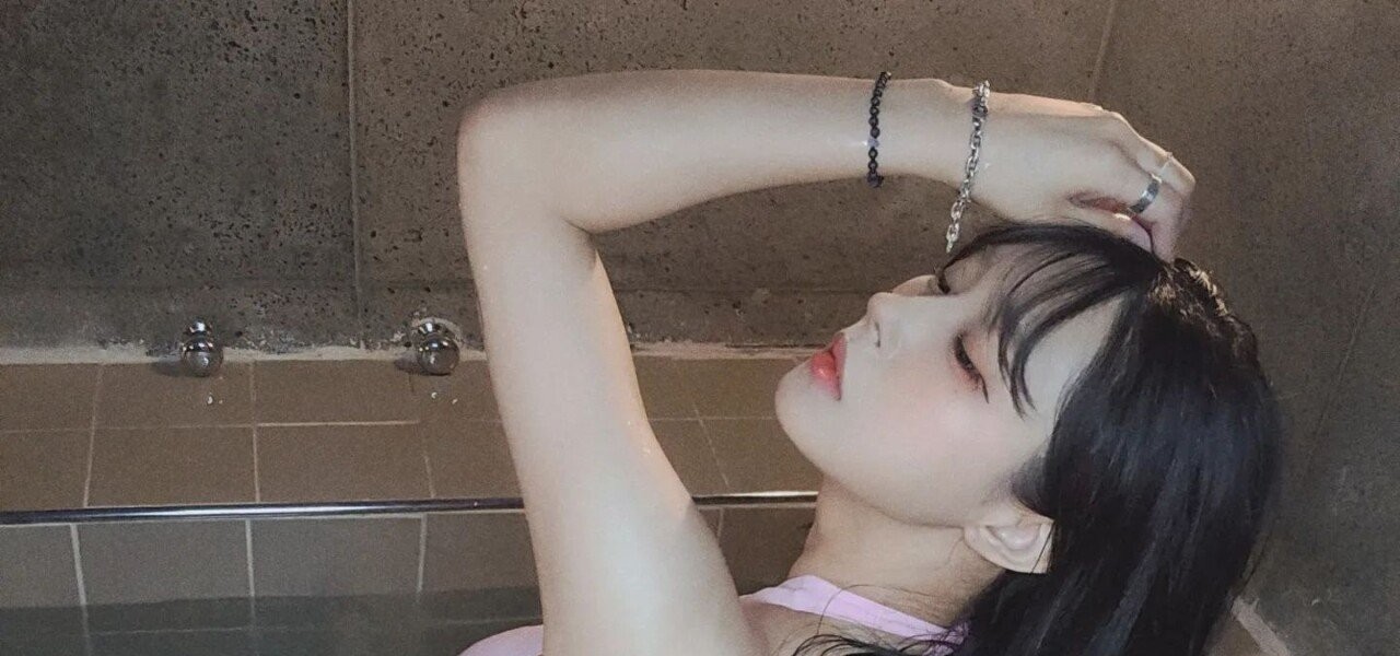 浴槽でピンクホルターネックビキニを着たキム·ガプジュ