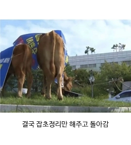 牛を引き連れて市役所に抗議