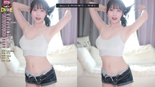 (SOUND)ハンガン、白いTバックタンクトップ+パンティー風のホットパンツを着て胸の谷間を披露
