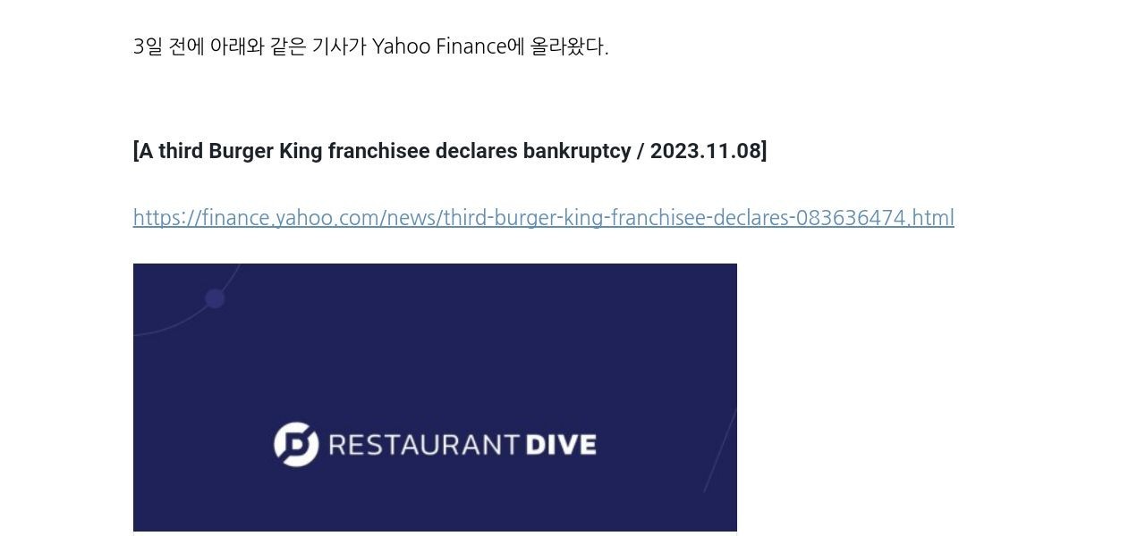 アメリカでバーガーキングが破産申請したんですね