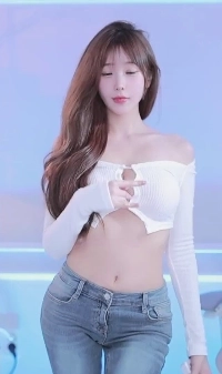 (SOUND)真ん中に穴の開いた白いチューブトップ、動く胸の谷間+ジーンズがシム・チョンにフィット