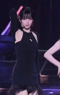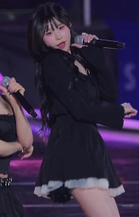 ファー付きの黒いドレス、骨盤の回転、フロミスナインのイ・チェヨン、お尻の下の脂肪