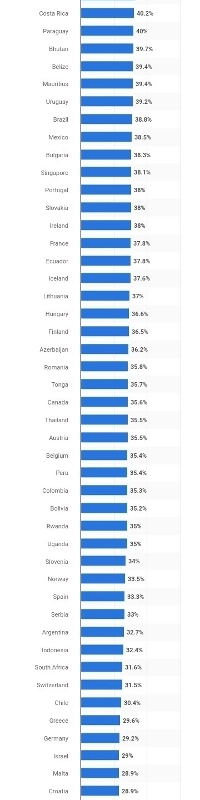 各国の女性マネージャーのランキング
