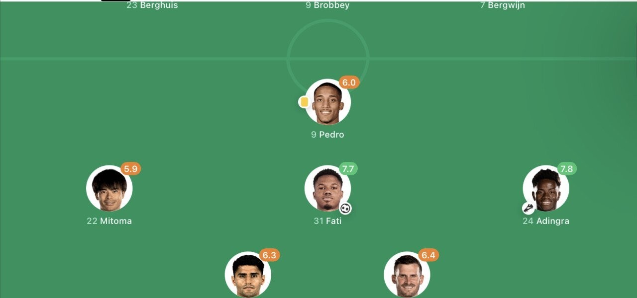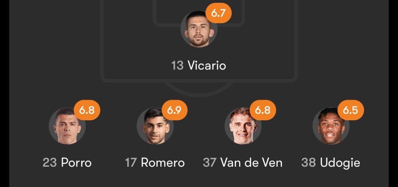 FotMobトッテナム全般評点vsフラム