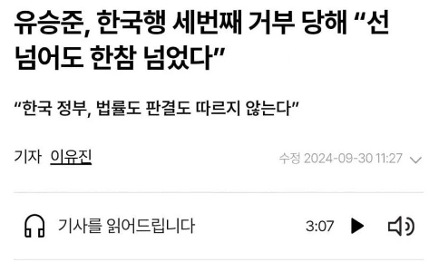 スンジュン・ユ警告: “”””韓国は私にとって一線を超えすぎています。””””