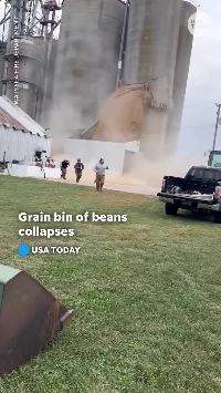 (SOUND)アメリカ・イリノイ州の大豆貯蔵タンク崩壊現場
