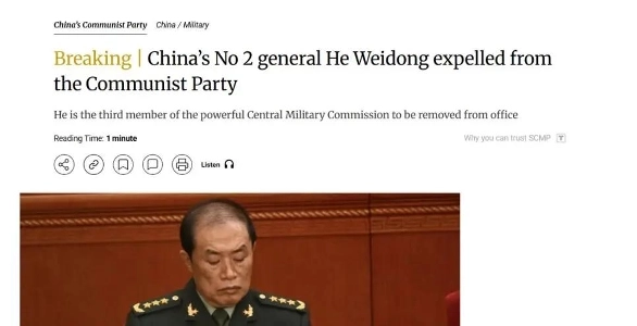 中国軍副司令官が党員資格剥奪