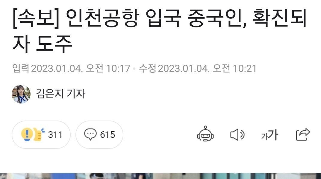 速報、仁川空港に入国した中国人が確認され逃走