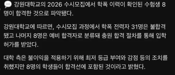江原大、校内暴力歴のある学生8人を入学
