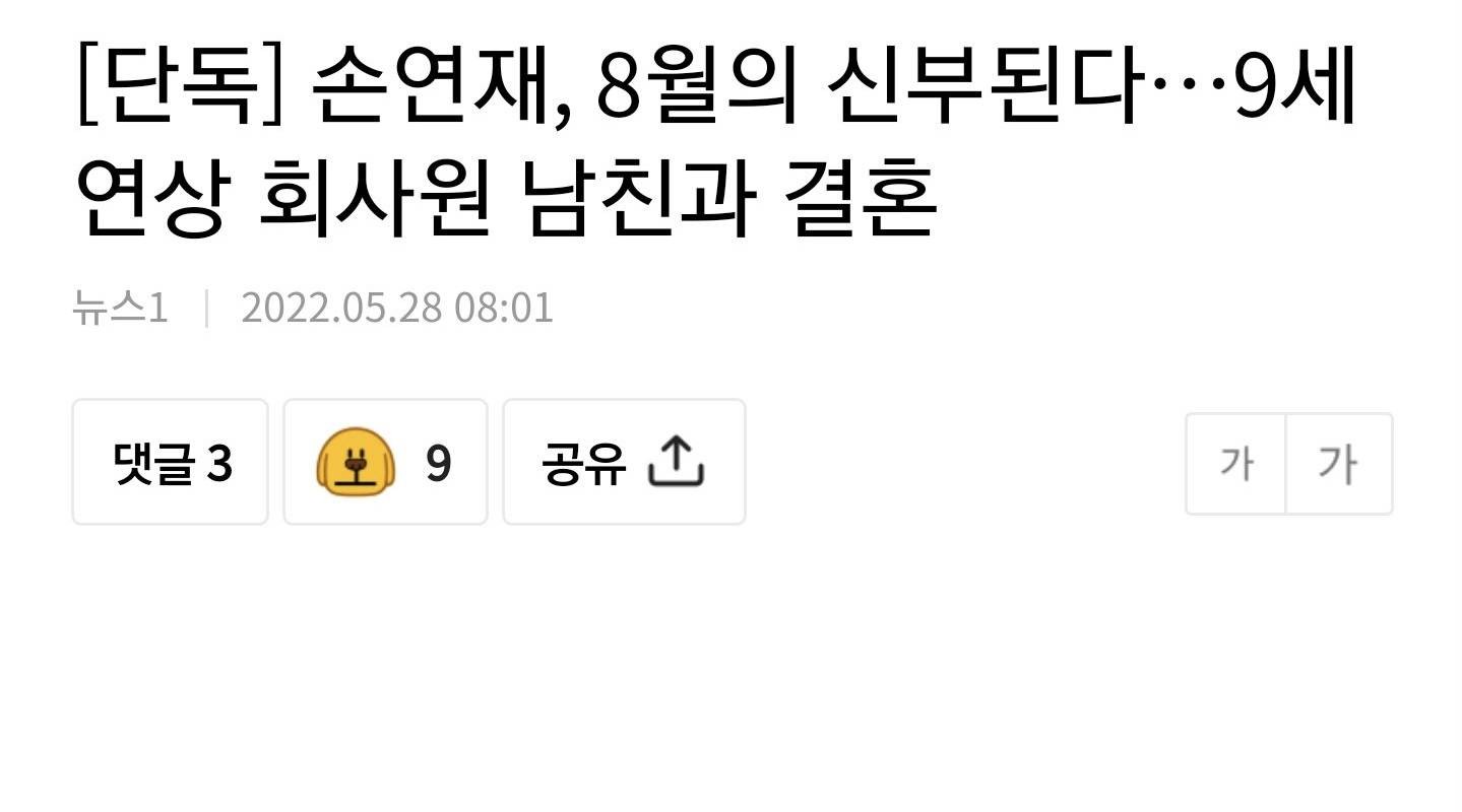 ●孫延在、9歳年上の会社員と結婚のニュースに女中、「クンクンイニョン」たちの反応