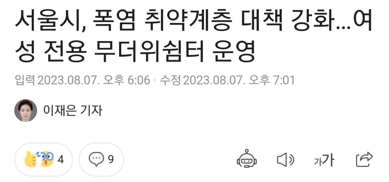 ソウル市猛暑脆弱階層対策強化···女性専用蒸し暑さ休憩所の運営