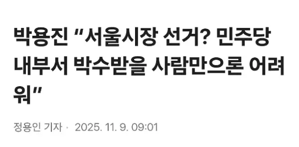 パク・ヨンジン「ソウル市長選挙?民主党内で一人だけ拍手をもらえる人を見つけるのは難しい」