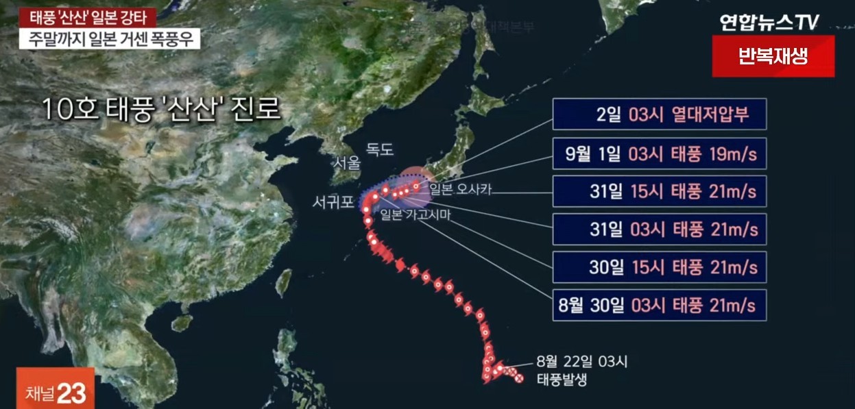 台風産山、強力な力で迫る