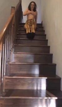ただ階段から降りてくるビキニ女