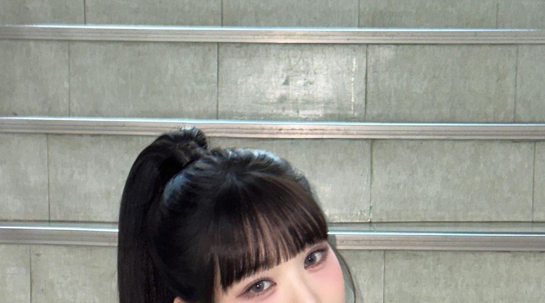 デニムスカートの階段に座っているポニーテールアイブチャン·ウォニョン太もも