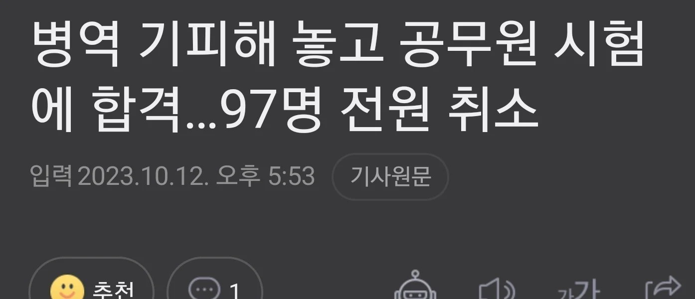 兵役回避公務員合格者97人全員取り消し