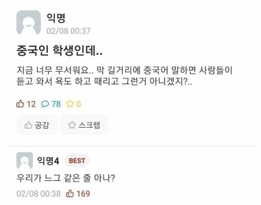 韓国人の間の中国の違い