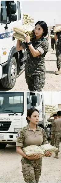 Aiさんが描いた休憩と作業をする韓国の女性兵士