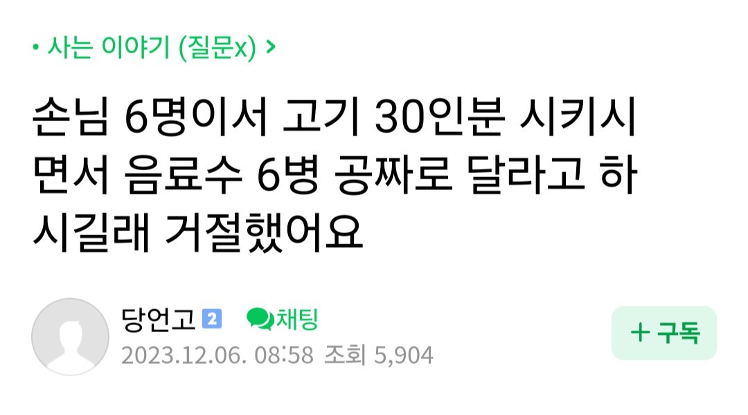 お客さん6人でお肉30人前頼んだんですが飲み物6本無料でほしいと言われて断りました