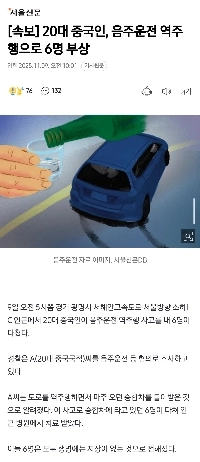 【速報】中国人20代男性、飲酒運転で6人負傷