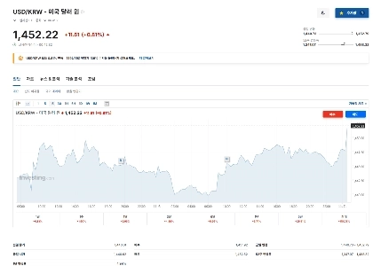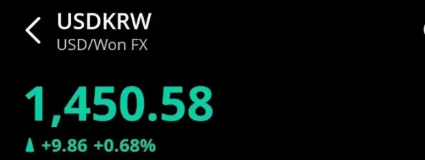 一方、為替レートは1450ウォンを超えた。